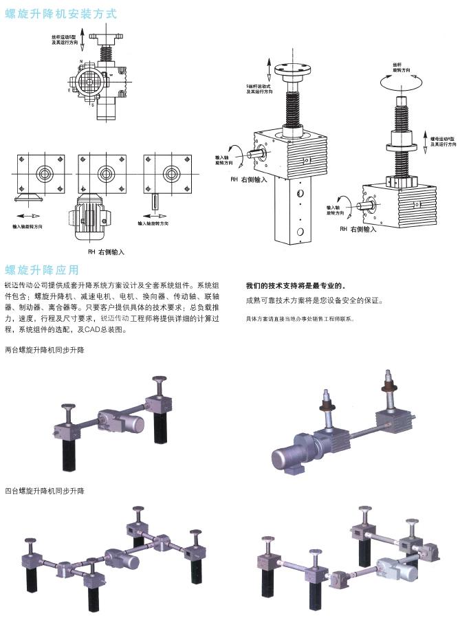 可以按照客戶要求非標(biāo)設(shè)計(jì),如不銹鋼殼體及絲杠螺旋升降機(jī),多頭絲杠,耐高溫,耐低溫等產(chǎn)品。